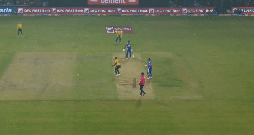 भारत ने टॉस गंवाकर निर्धारित 20 ओवर में छह विकेट के नुकसान पर 175 रन जुटाए। कमबैक करने वाले हार्दिक पांड्या ने तूफानी अर्धशतकीय पारी खेली। उन्होंने 28 गेंदों में नाबाद 59 रन बनाए, जिसमें छह चौके और चार सिक्स हैं। भारत ने चार विकेट 78 रन पर गंवा दिए थे, जिसके बाद हार्दिक ने बखूबी मोर्चा संभाला। भारतीय टीम की शुरुआत अच्छी नहीं रही थी। ओपनर शुभमन गिल (17), कप्तान सूर्यकुमार यादव (12) और उपकप्तान शुभमन गिल (4) धमाल नहीं मचाल सके।