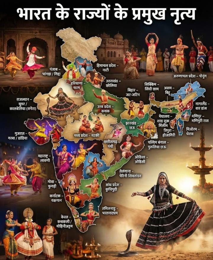 प्रमुख लोक नृत्य (Folk Dances)!! पंजाब: भांगड़ा, गिद्दा, दफ्फ, भांड गुजरात: गरबा, डांडिया रास, टिप्पणी,…