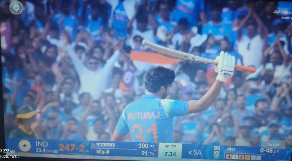Cricket Home Rahul December 3, 2025 0 Comments Ruturaj Gaikwad ki 1st ODI 100 Ruturaj Gaikwad ने अपना पहला शतक दक्षिण अफ्रीका के खिलाफ 77 गेंद में बनाया। जिसमें 12 चौके 2 छक्के जड़े।